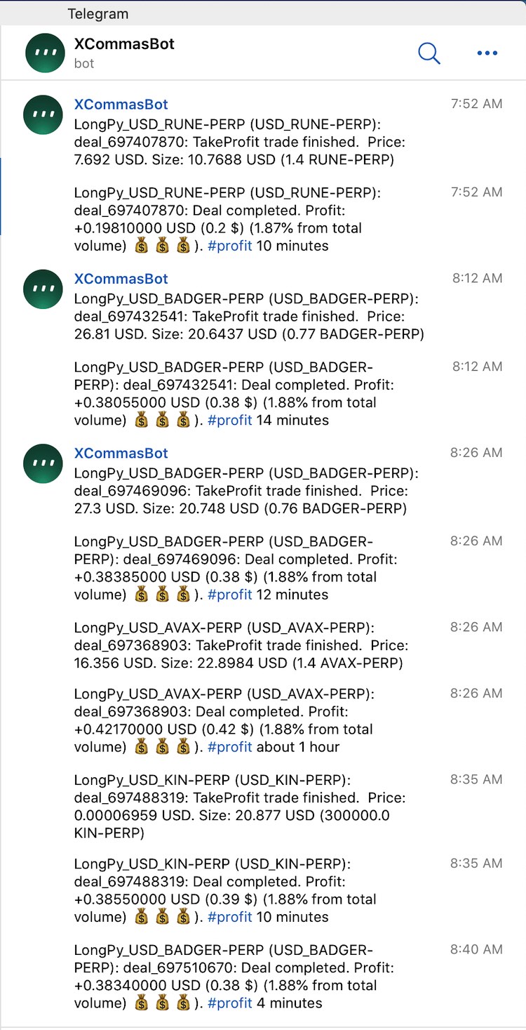 Over the past year and a bit I’ve been struggling to come up with a system that is truly passive. Of course, it doesn’t exist, you always need to be checking and adjusting your bots’ parameters for maximum returns. This system gets as close as you can to being completely passive, with only a few minor adjustments every few weeks. And seriously, as I’m typing this post my Telegram notifications keep going off, letting me know deals are closing constantly. It’s incredible, and a constant reminder the system is working.